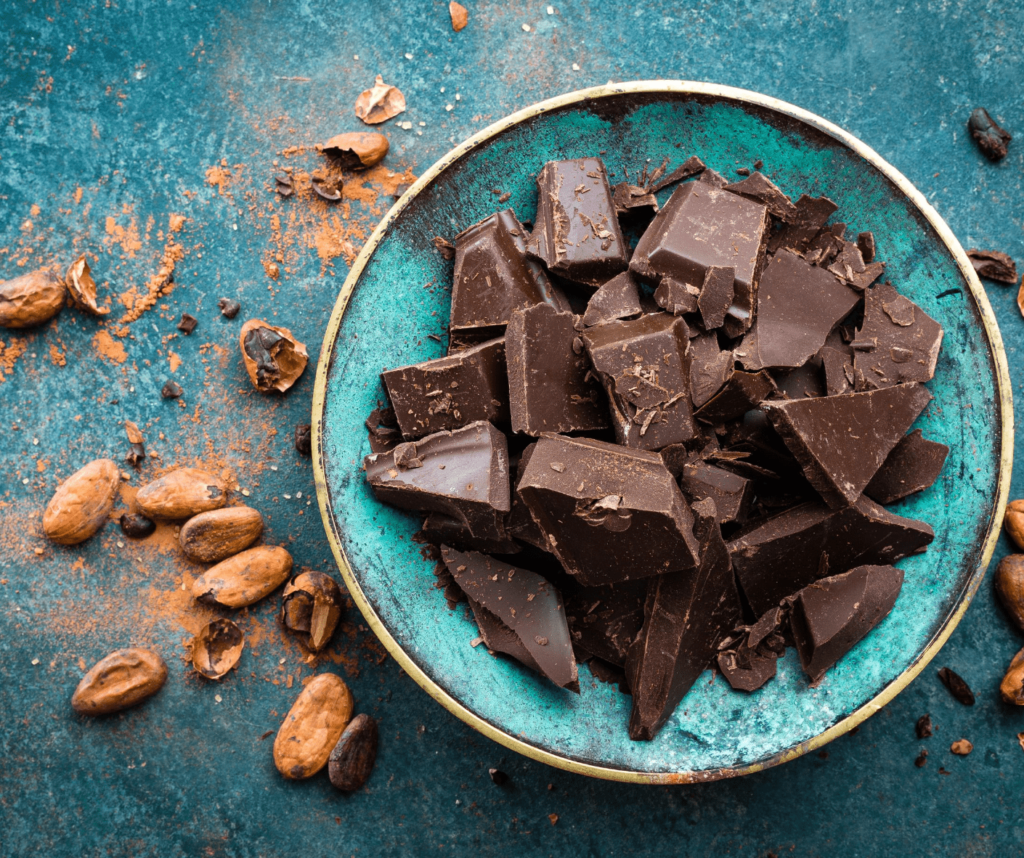 Tip: Stick with the kind that contains at least 85% cocoa and keep it to just a bite or two and not the whole bar.